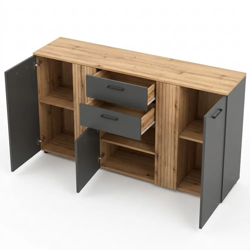 Multifunktionaler Wohnzimmerschrank mit Türen und Schubladen, Eichenoptik